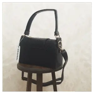 این کیف دارای یک آویز کوچک (کیف کوچک، جاکارتی، یا کیف پول کوچک) با همان طرح چهارخانه که به دسته متصل شده است.