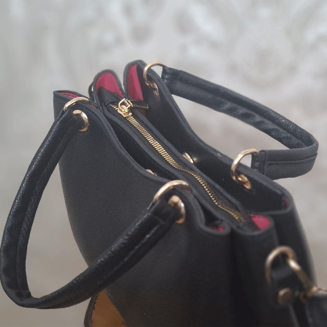 - رنگ کلاسیک با آستر جذاب: رنگ مشکی ابدی کیف، قابلیت ست شدن با هر رنگ و استایلی را دارد. علاوه بر این، مشاهده کمی آستر قرمز یا زرشکی در کنارههای باز کیف، یک لایه ظرافت و کنتراست پنهان به آن میبخشد.