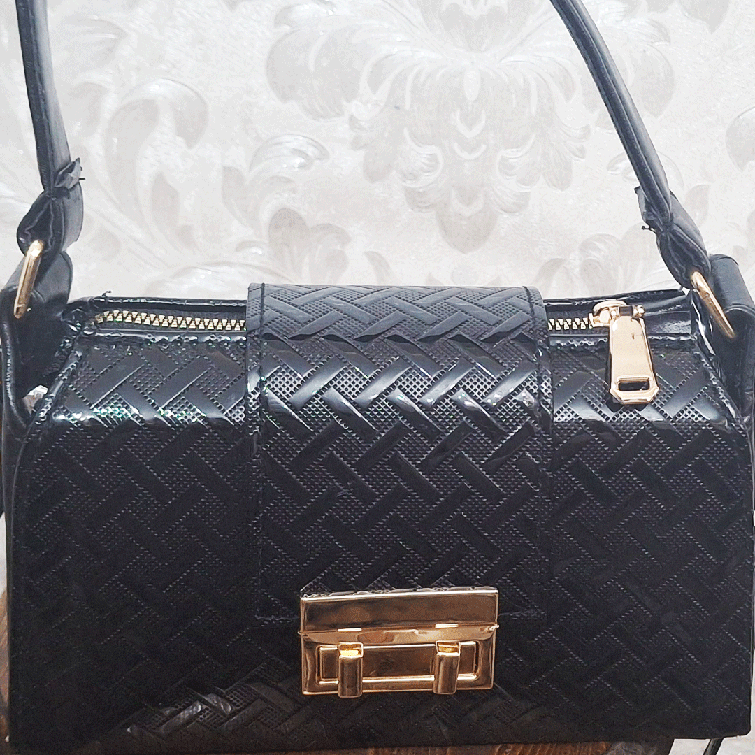 ✨کیف دوشی مشکی ورنی بافت‌دار